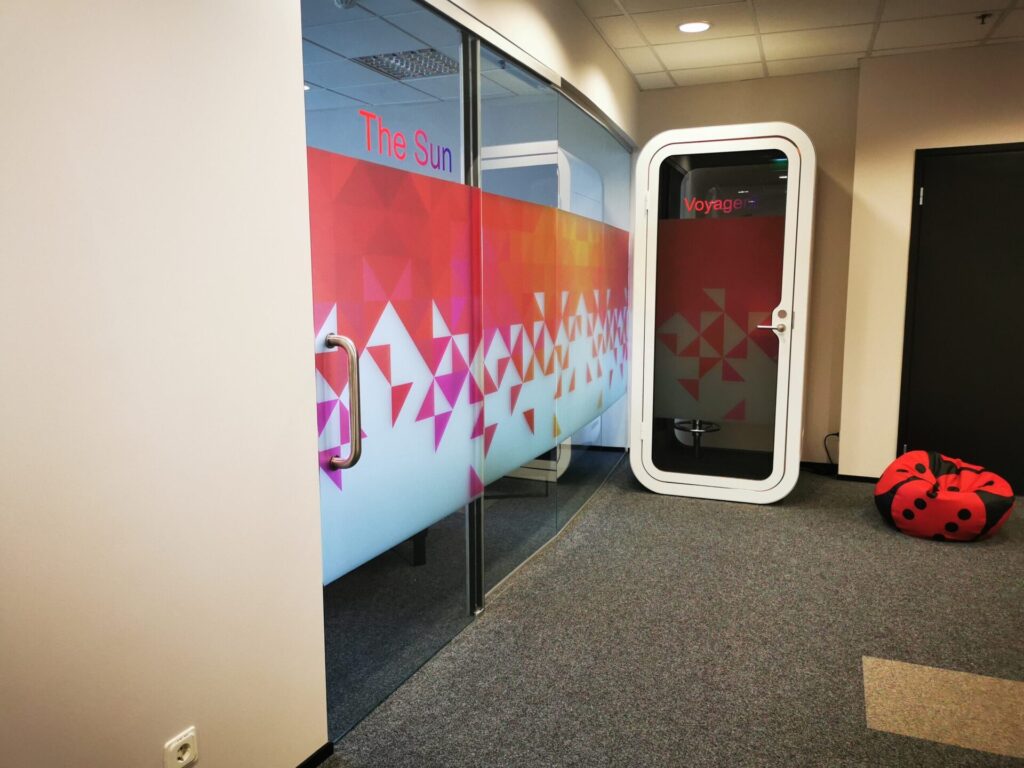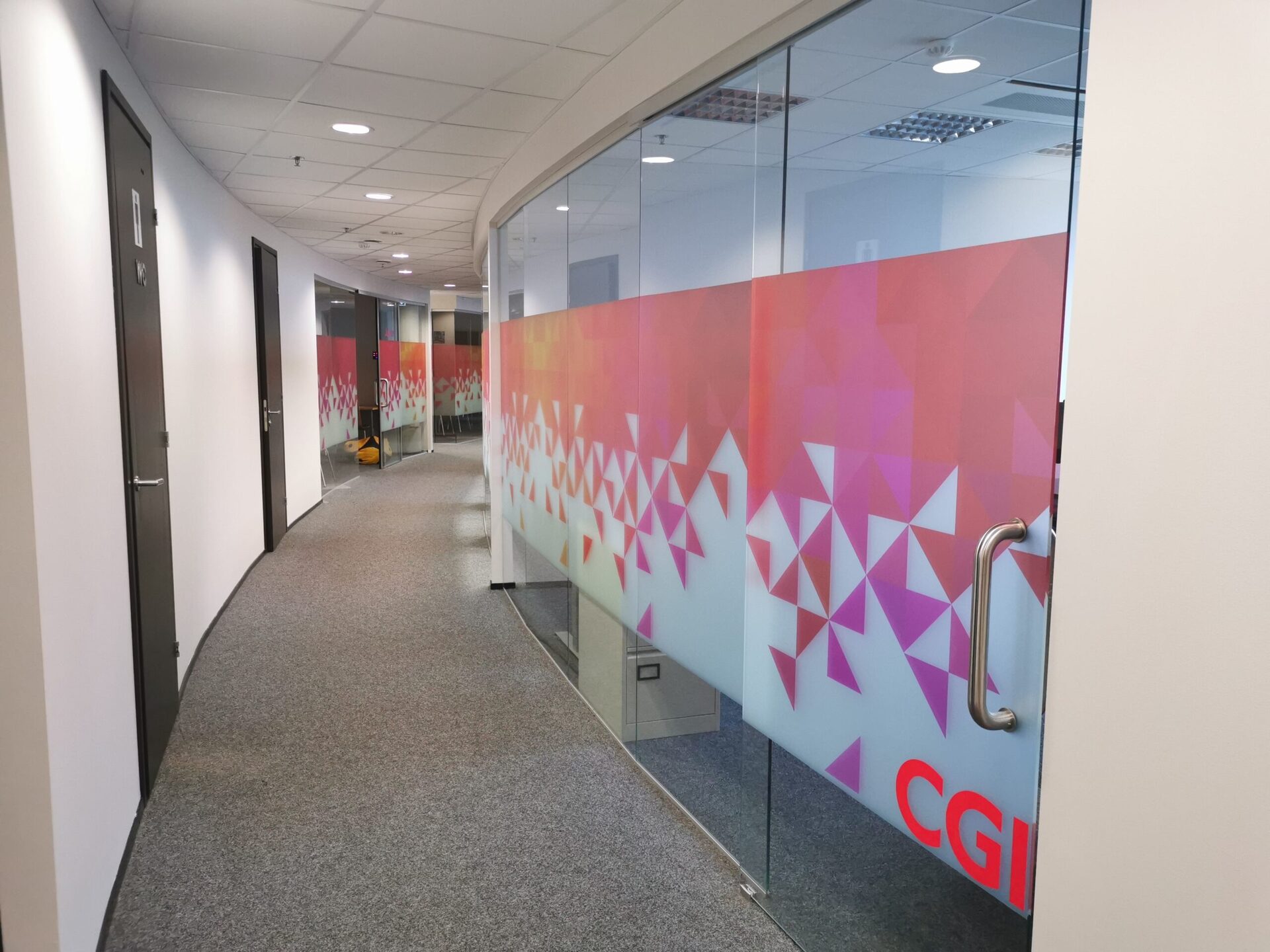 CGI Tallinna kontor sai värske ja kaasaegse ilme tänu ettevõtte värvides dekoratiivkiledele. Mõlemad korrused, sealhulgas tööruumid, koosolekuruumid ja privaatsed telefoniputkad, said klaasseintele kiled, mis ühendavad stiilse disaini ja praktilise funktsionaalsuse.