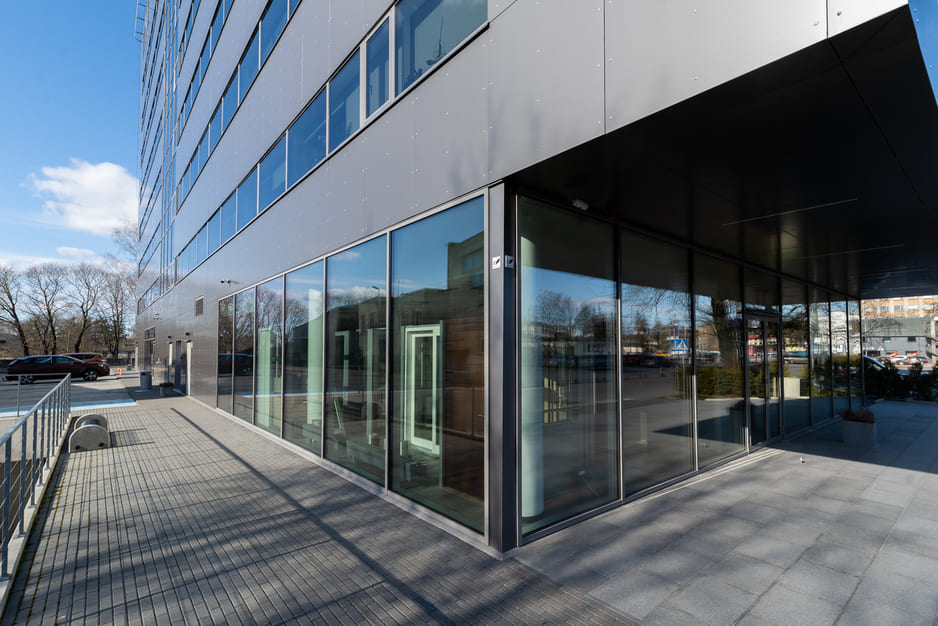 Müügisalongi aknad kaeti päikesekaitsekiledega, millega sai probleemi kontrolli alla. Konkreetne kile valiti arvestades nii tõhusust kui ka välimust, sest klaasfassaadi ilme ei tohtinud muutuda. Tööd tellis EKE Invest.