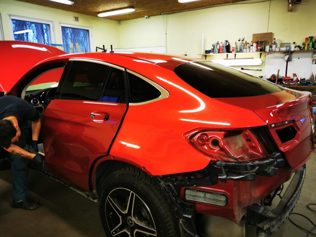 Kogu kere kaeti Diamond Red tooni vinüülkilega, mis annab autole sügava ja erksa punase viimistluse ning toob kerejooned selgelt esile. Visuaali täiendamiseks värvisime tehase mustjas-hallid struktuursed plastikdetailid läikiva musta värviga, et need sobituksid paremini uue kerevärviga ning looksid puhtama ja kontrastsema üldmulje. Lisaks kiletasime ka kõik klaasid toonkilega, mis lisab autole privaatsust, parandab päikesekaitset ja toetab sportlikumat välimust.